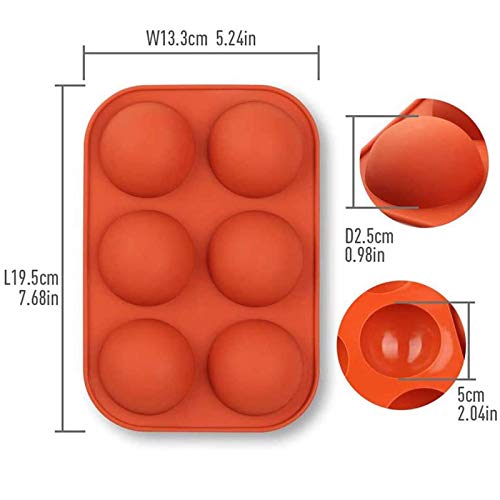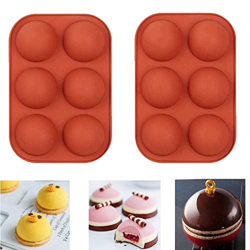 Wolady - قالب سيليكون للخبز والشوكولاتة بـ 6 فتحات، قالب خبز سيليكون دائري نصف كروي، قالب كيك من السيليكون للمافن والشوكولاتة والكوكيز (احمر) - قطعتين