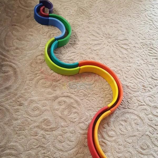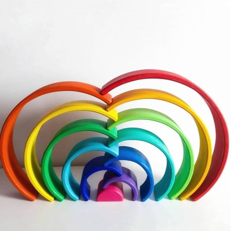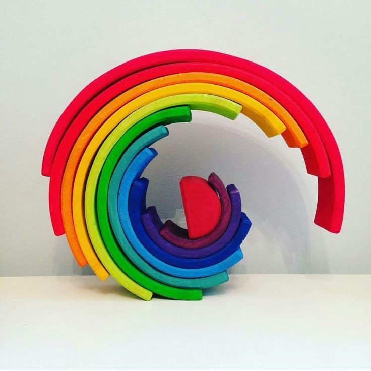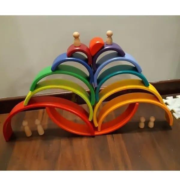 Generic - حلقات ولدورف من خشب الزان الطبيعي ألعاب أطفال منتيسوري متعددة الاستخدامات للإبداع والتعلم (12 حلقة, قوس قزح)