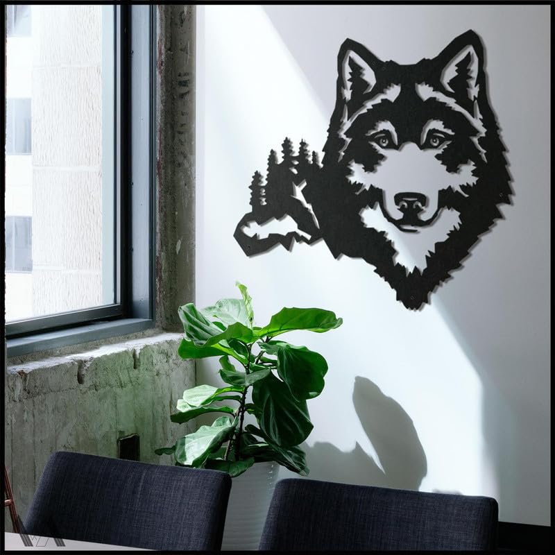 Generic - لوحة فنية جدارية لرأس الذئب مقاس 90 × 81 سم بلون اسود