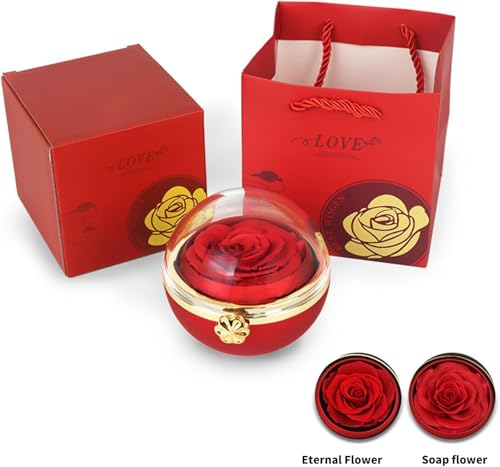 Generic - صندوق خواتم وولف على شكل وردة، صندوق قلادة على شكل زهرة، صندوق اقراط، صندوق هدايا مجوهرات لعيد الحب وعيد الام والزفاف والذكرى السنوية واعياد الميلاد (احمر)