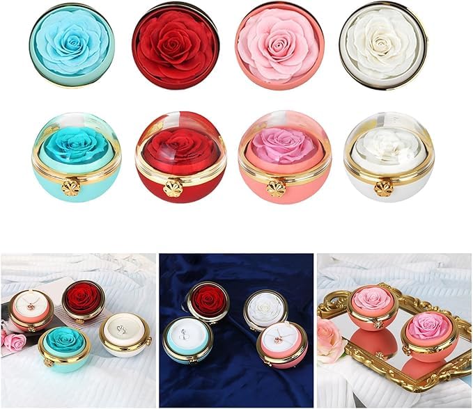 - تصميم أنيق: صندوق مجوهرات جميل على شكل وردة مصنوع باهتمام رائع بالتفاصيل، مثالي لتخزين وتقديم الخواتم والقلائد والأقراط