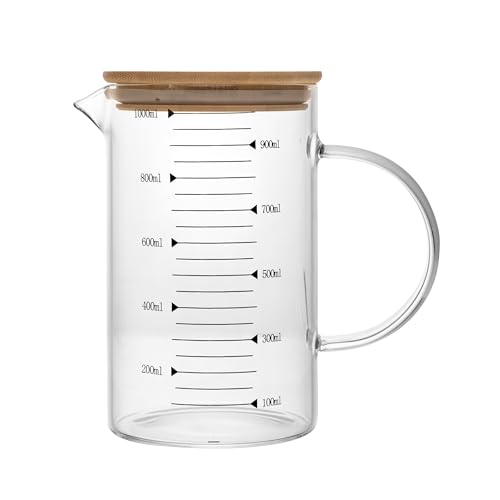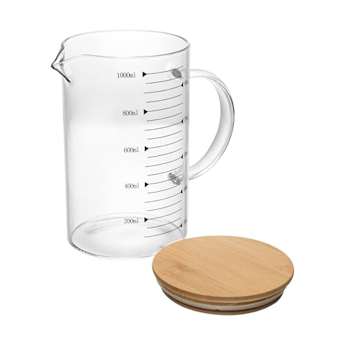 WOLFF - وولف - برطمان قياس مع غطاء خيزران 1 لتر من زجاج البوروسيليكات