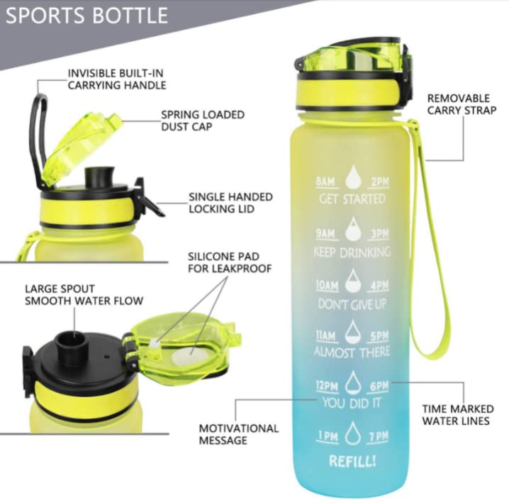 - 【تصميم مقبض فريد وقابل للحمل】تتميز زجاجة المياه الملهمة سعة 900 مل بمقبض متين وعريض، ليناسب يدك تماما. زجاجة مياه مزدوجة الغرض وتحتوي على شفاطة قابلة للإزالة ويمكن استخدامها لتدفق المياه بسرعة أو لشرب مقاوم للانسكاب. يمكن للغطاء العلوي المضاد للغبار والتسريب أن يحافظ على نظافته بشكل أفضل، مما يضمن لك مياه صحية.