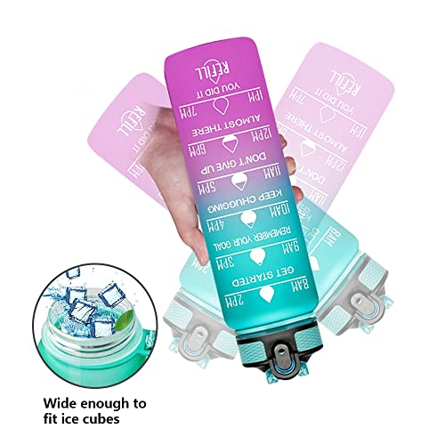 - 【زجاجة مياه تحفيزية】صُممت زجاجة المياه ذات السعة الكبيرة بعلامات للوقت وعلامات للحجم لتحفزك على شرب المزيد من الماء، فهي كبيرة بما يكفي لتلبية الاحتياجات اليومية لاستهلاك الماء. يتميز بميزان قياس يساعدك على التحقق من الكمية الفعلية من استيعاب الماء بسهولة وبوضوح.