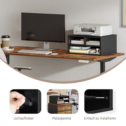 - ـ تصميم حديث وعملي: لمسة نهائية بلون كلاسيكي، رف المكتب بسيط وعصري للتكيف بسهولة مع أي نمط داخلي. يمكن استخدامه أيضًا كحامل لمشغل التسجيلات ومنظم مكتب ورف طابعة وحامل لوحدة التحكم في الألعاب وما إلى ذلك.