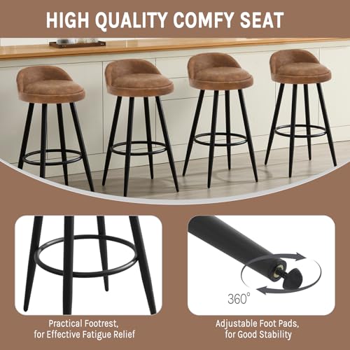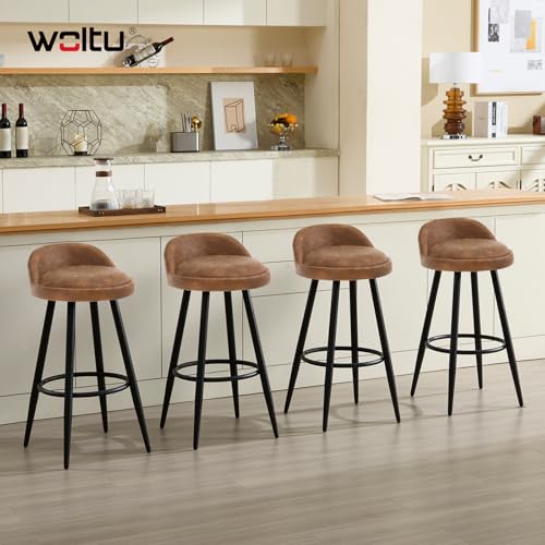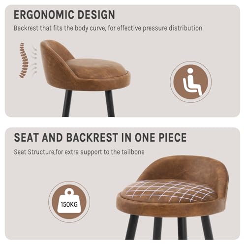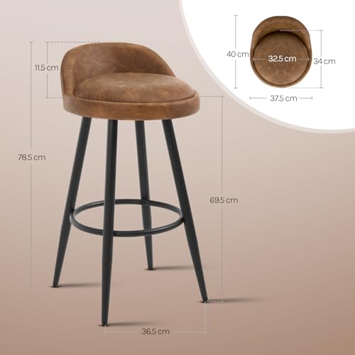 WOLTU - كرسي بار مرتفع من الجلد الصناعي للمطبخ مزود بمقعد ثابت ومسند قدم وأرجل معدنية من وولتو، BH327br-2