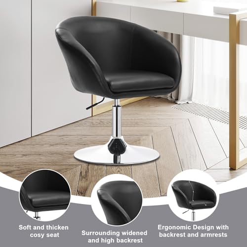 WOLTU - مقعد بار BH24sz-1 من وولتو مبطن بشكل جيد الستيل المطلي بالكروم مع مسند ذراع ومسند ظهر قابل للتعديل لا نهائي قطعة واحدة لون أسود جلد صناعي