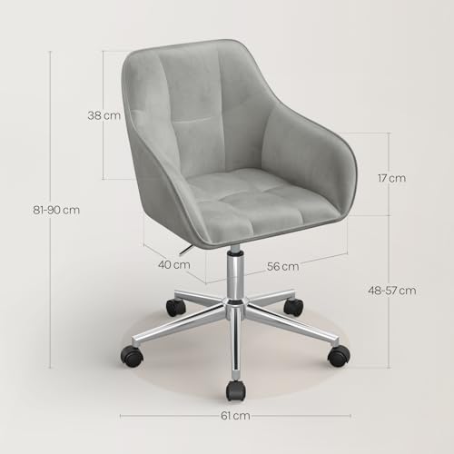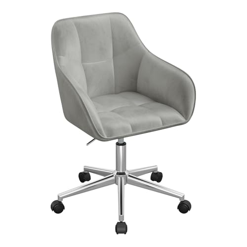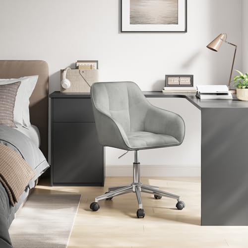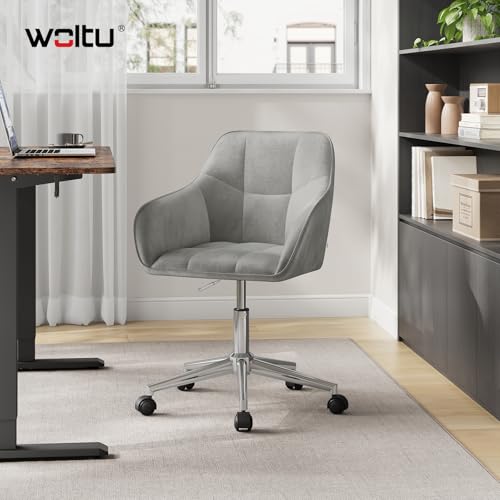 WOLTU - كرسي من وولتو للمكتب والمكياج وغرفة المعيشة، دوار 360 درجة وقابل لتعديل الارتفاع مع غطاء مخملي وقدرة تحمل 150 كجم، مصنوع من البولي يوريثان والبلاستيك والمعدن، باللون الرمادي الفاتح