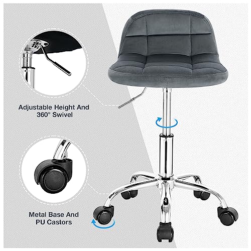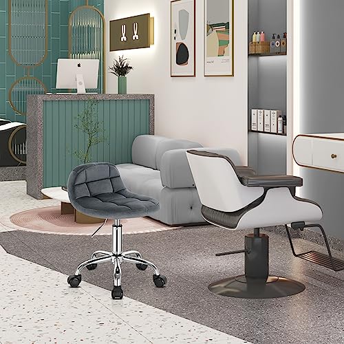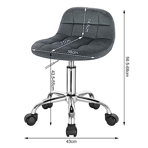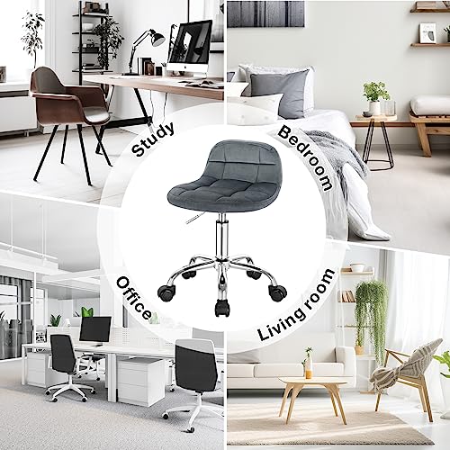 WOLTU - كرسي مكتب بعجلات موديل BS131dgr من وولتو، كرسي طاولة ملابس، ارتفاع قابل للتعديل، كرسي هزاز دوار مع مسند ظهر منخفض، مقعد عمل، ارتفاع المقعد 43.5-55 سم، فيلفيت، رمادي غامق