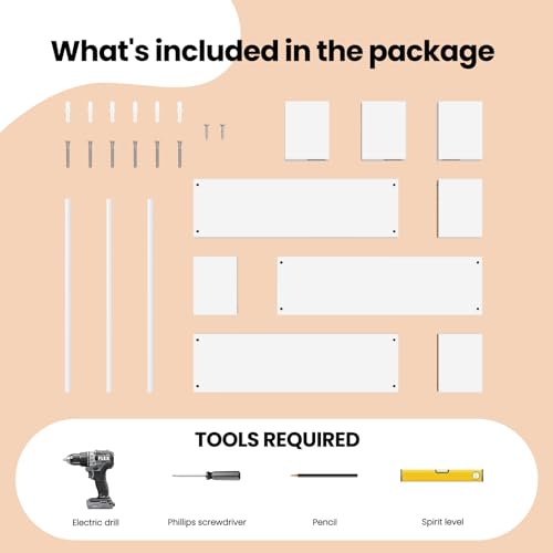 - سهل التركيب: بمساعدة التعليمات الموضحة والملحقات المحددة، فإن تجميع رف الحائط سهل للغاية. تنبيه: يرجى تثبيته على جدار صلب