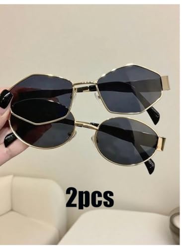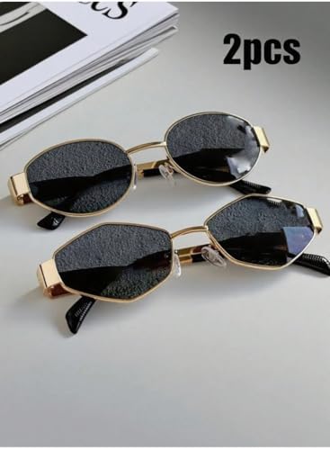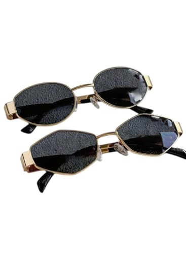 Generic - زوجان من النظارات البيضاوية الهندسية Y2K الصيفية العصرية للنساء، نظارات باطار معدني رترو للجنسين، مناسبة بمقاس واحد من ليوبارد