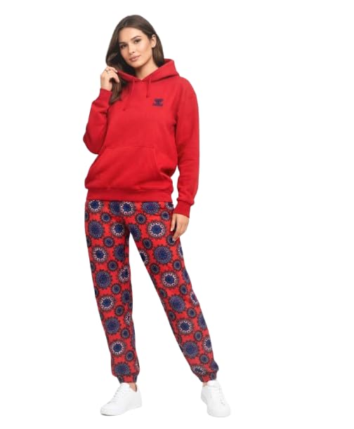 Generic - طقم نسائي خريفي هودي وبنطلون، تصميم عصري مريح، مناسب للكاجوال والخروج، أحمر بنقشة زهور، مناسب لوزن 65 كجم