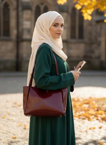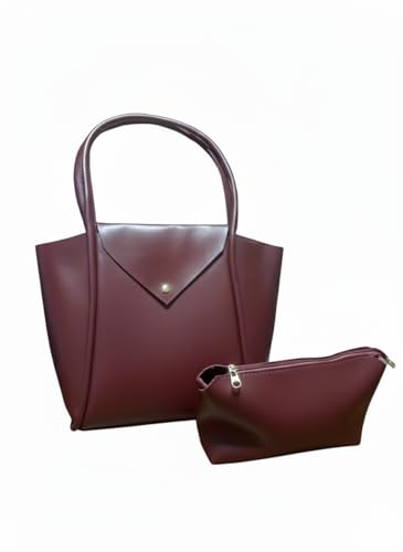 Generic - شنطة نسائية بمقابض ثابتة مع حزام طويل مزدوج لحقيبة صغيرة بلون بورغندي - 35 × 30 سم