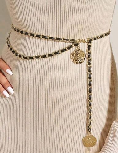 Generic - حزام نسائي سلسلة معدنية 1 قطعة حزام معدني للنساء مع زخرفة سبيكة، اكسسوار فستان حزام خصر قابل للتعديل