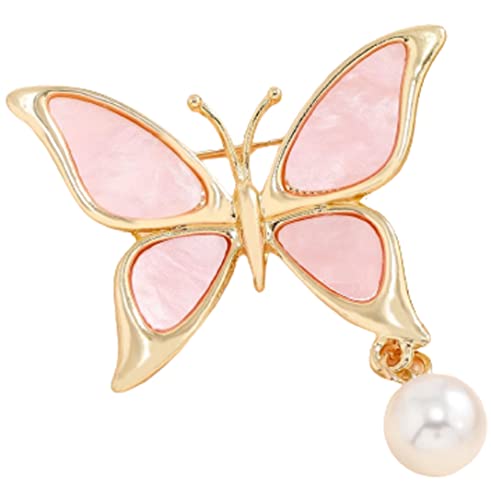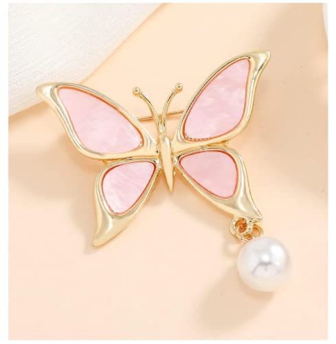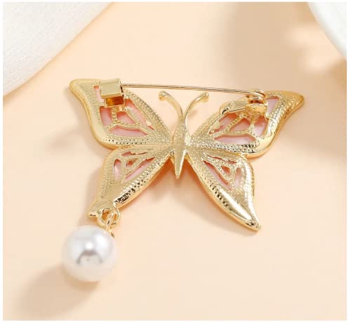 Generic - بروش نسائي دبوس زينة مطلي ذهب مزخرف بلؤلؤ اصطناعي بتصميم فراشة
