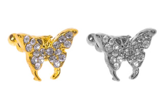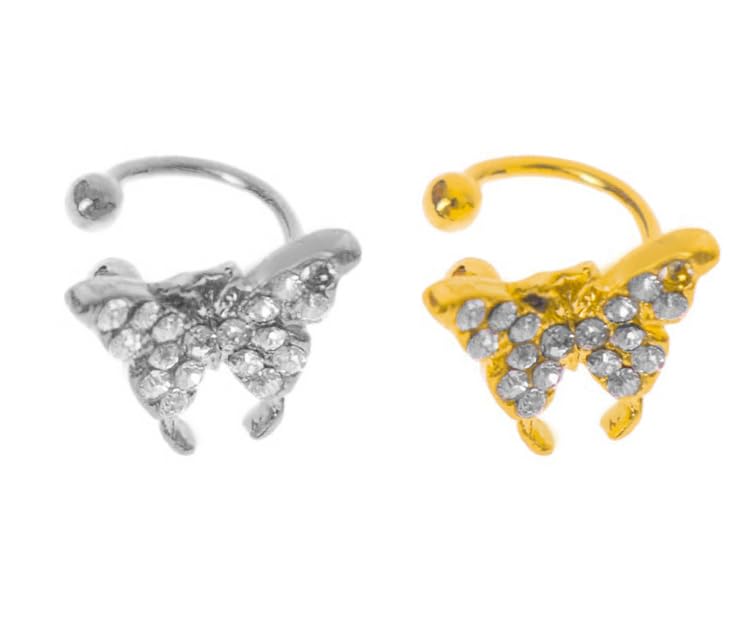 Generic - اقراط على شكل فراشة بدون ثقب للنساء - لون ذهبي، معدن