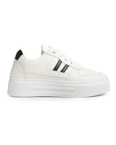 Desert - حذاء رياضي مسطح انيق ومريح للنساء بلون ابيض واسود مقاس 39 EU