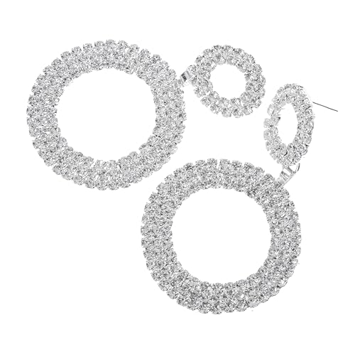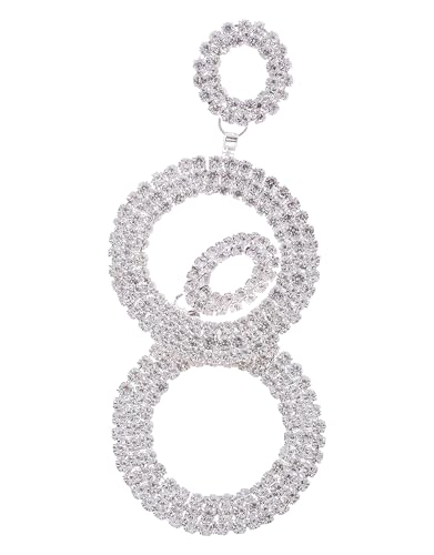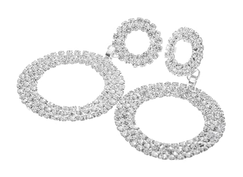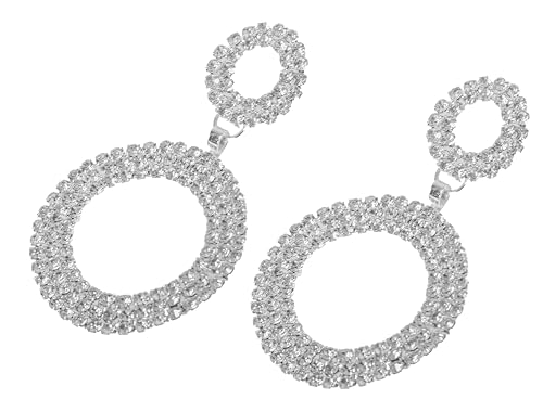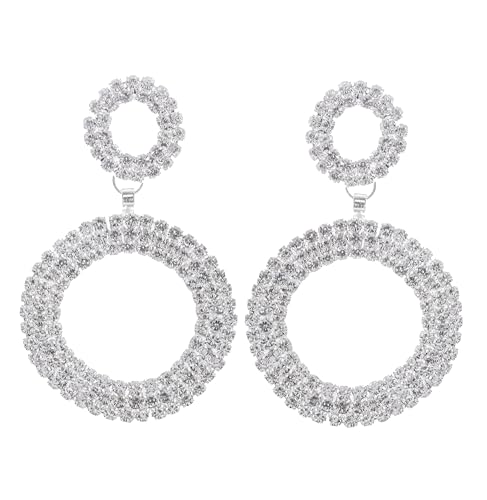 Generic - اقراط متدلية من الماس على شكل دائرة للنساء - فضي