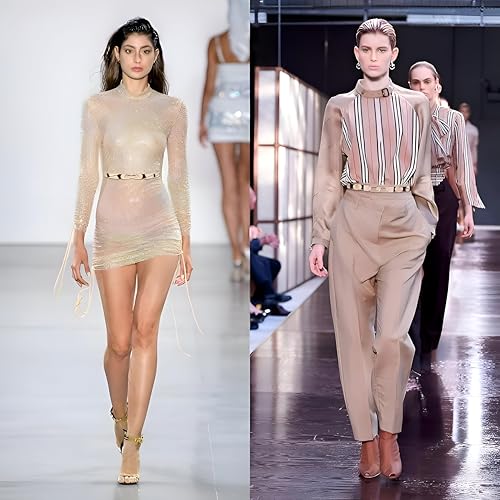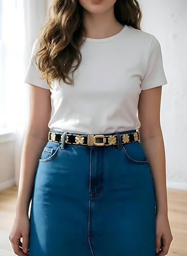 Generic - حزام رسمي للنساء - حزام خصر مطاطي مرن مع ابزيم ذهبي للفساتين الانيقة، راحة قابلة للتعديل لجميع انواع الجسم