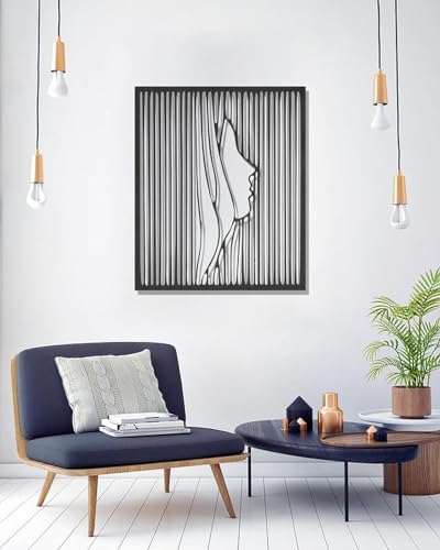 Generic - ديكور حائط بتصميم وجه للنساء طراز WQ.WA73.05 مقاس 60 × 60 سم لون أسود