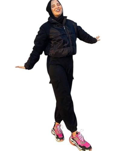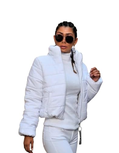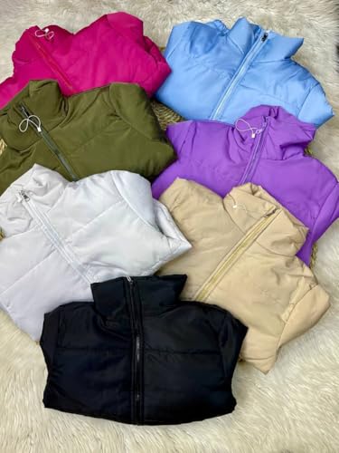 Generic - جاكيت بمب نسائي عصري، جاكت شتوي قصير مبطن ون سايز متعدد الألوان، تصميم أنيق بسحاب كامل