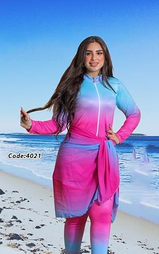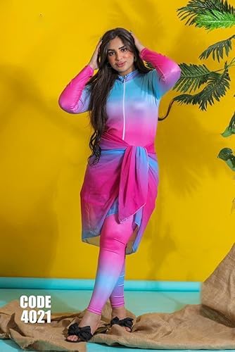 9Street Corner - ملابس سباحة للنساء والبنات بوركينى 4 قطع جامبسوت كم طويل بنطلون وجيبة شيفون وتربون كود 4021
