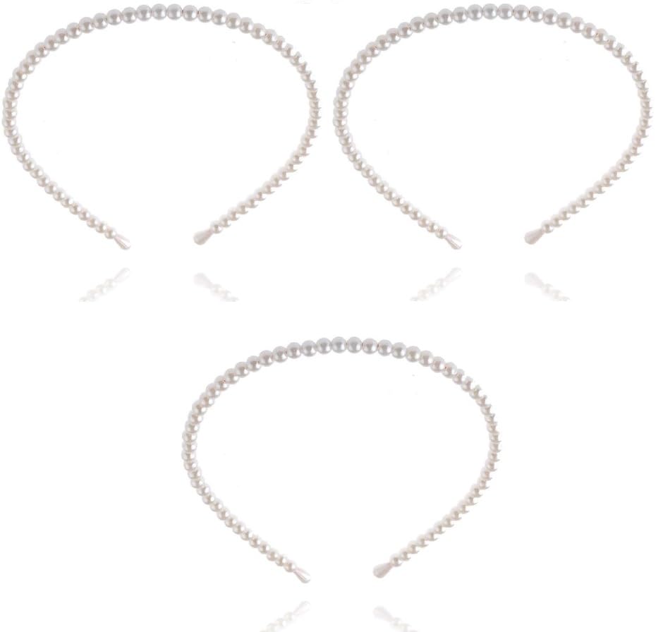 Generic - طوق رأس للنساء والبنات بتصميم بسيط مزين باللؤلؤ الصناعي انيق وعصري من اللؤلؤ بالكامل لحفلات الزفاف والمنزل والخروجات عصابات شعر (offwhite, 3)