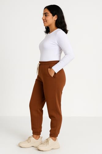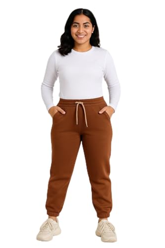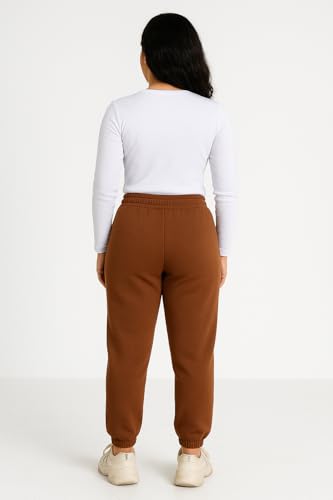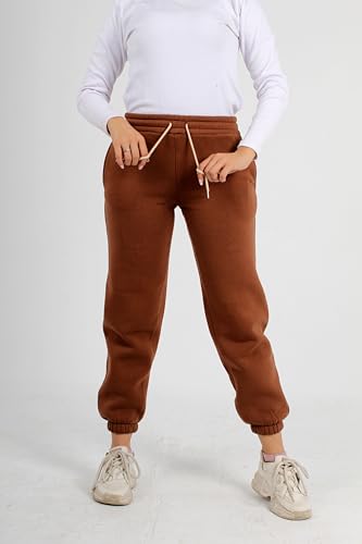 Generic - بنطلون رياضي للنساء والبنات شتوي بني قطن 100% (ميلتون) بخصر مطاطي مع رباط، وكاحل باستك، وبجيبين مريح وعملي كاجوال و عصري، مناسب للجيم والنادي والجامعة وخروجات الاصدقاء