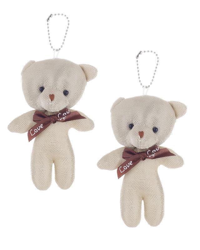 Generic - سلسلة مفاتيح بتصميم دب فرو لامع للنساء من قطعتين - لون بيج 176، مقاس واحد