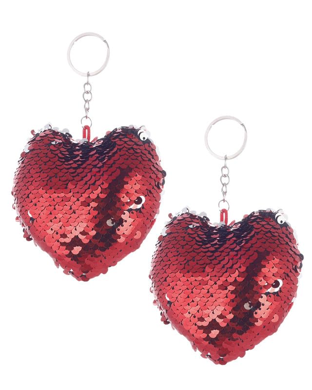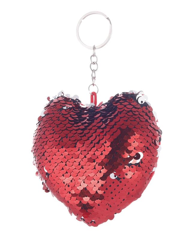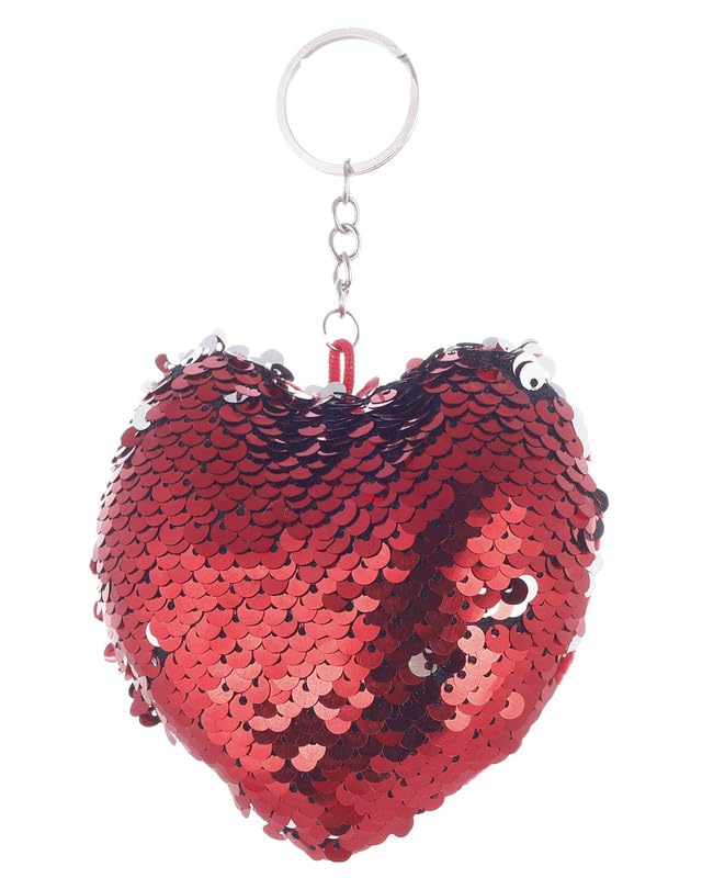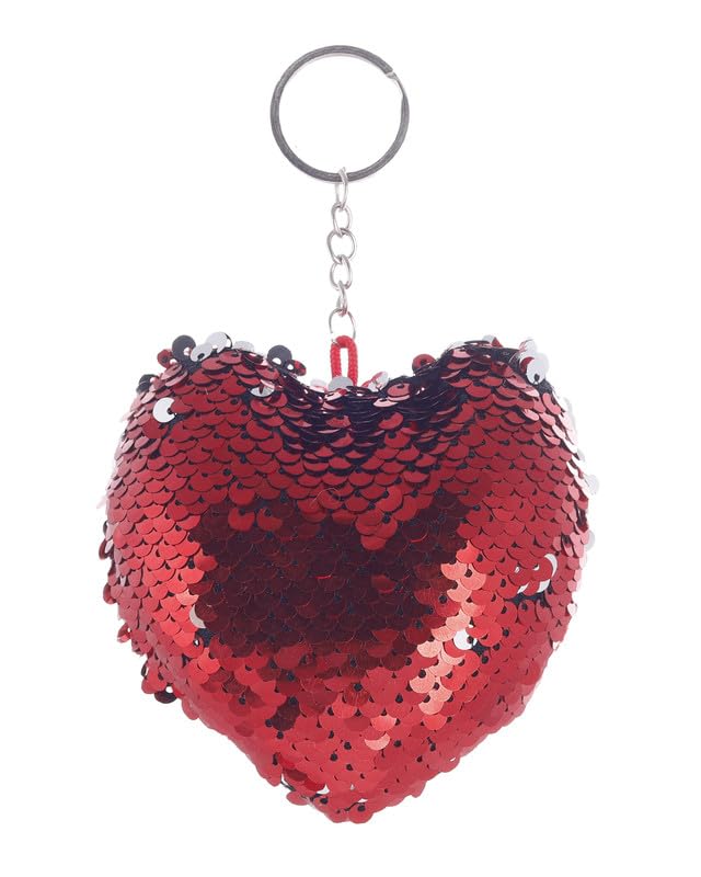 Generic - سلسلة مفاتيح فرو لامعة على شكل قلب للنساء من قطعتين - أحمر، موديل C172، مقاس واحد