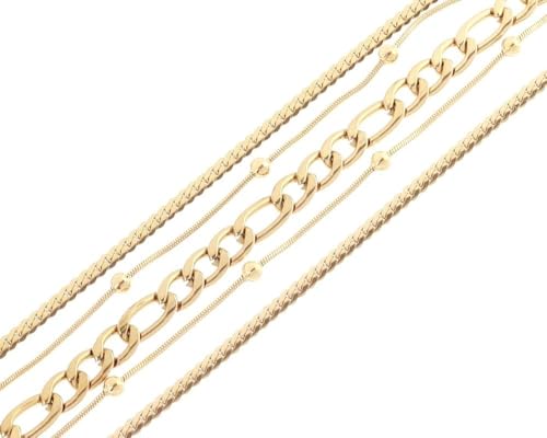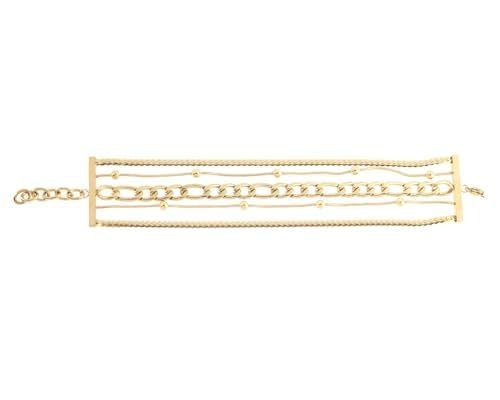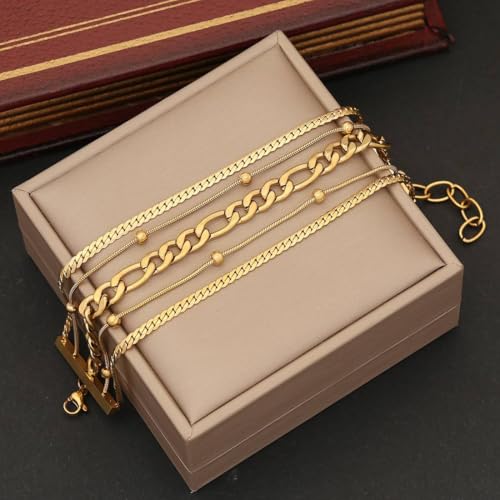 Generic - سوار نسائي ذهبي متعدد الطبقات، مجموعة أساور مطلية بالذهب، تصميم عصري أنيق 5 ادوار في 1 سلاسل متنوعة للمناسبات والهدايا سوار