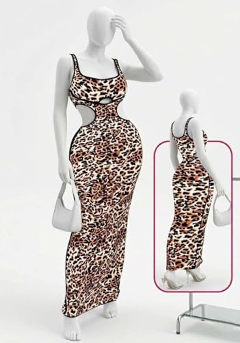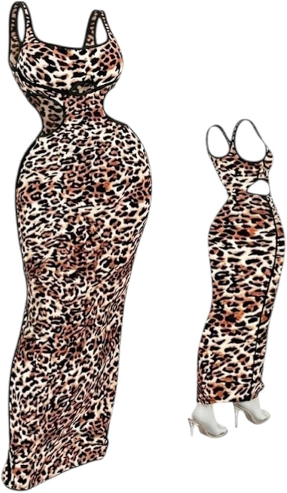 Orbella - فستان ماكسي للنساء بطبعة جلد الفهد، فستان صيفي ضيق بدون اكمام مع فتحات جانبية وقماش مطاطي