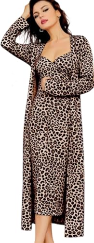 Generic - طقم لانجيري حريمي 2 قطعة – قميص + روب – لون تابجر بني ف بيج– خامة زبدة فاخرة – وان سايز حتى 90 كيلو – لانجيري أنيق للبيت والمناسبات الخاصة