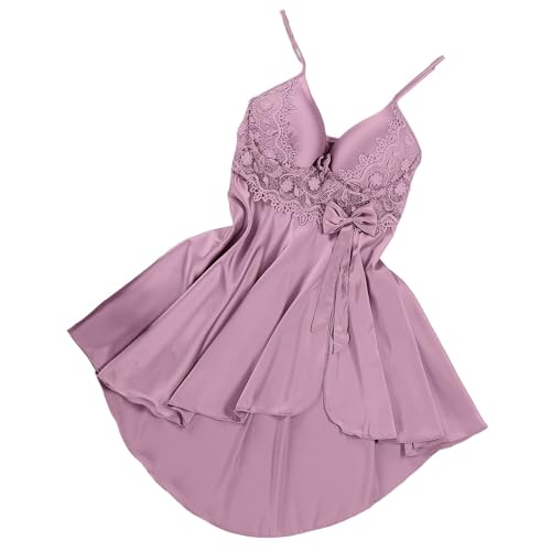Generic - لانجري نسائي حرير قصير – قميص نوم حريمي بحمالات ورباط خصر – مقاس واحد يناسب من 50 إلى 80 كجم (NO:1025)