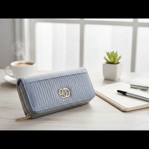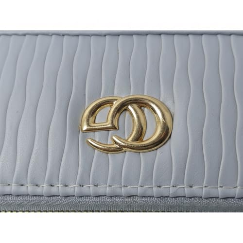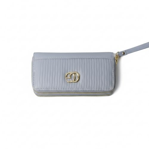 Generic - محفظة نسائية طويلة بسوستة مزدوجة وسعة كبيرة - محفظة يد جلدية للأموال والبطاقات والموبايل - تصميم عصري مضلع مع معصم يد (رمادي)