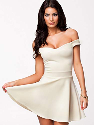 Generic - فستان نسائي قصير مطرز بالخرز بتصميم ملائم للحفلات المدرسية والجامعية والسهرات الخارجية والاعراس - ابيض، M