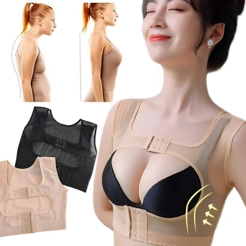 Plan A - مشّد صدر نسائي شبكي لتصحيح وضعية الجسم، كورسيه خفيف لتقويم الظهر والصدر، حزام دعم شفاف لرفع الثدي وتشكيل الجسم، مشد قابل للتنفس لتصحيح الحدبة وتحسين الوقفة (بيج, متوسط)