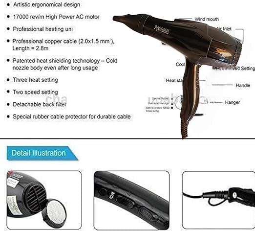 - وقت التجفيف السريع: بفضل محركه القوي وإعدادات السرعة القابلة للتعديل، يجفف مجفف الشعر هذا الشعر بسرعة، مما يوفر لك الوقت مع الاستمرار في توفير نتائج بجودة صالونات التجميل.