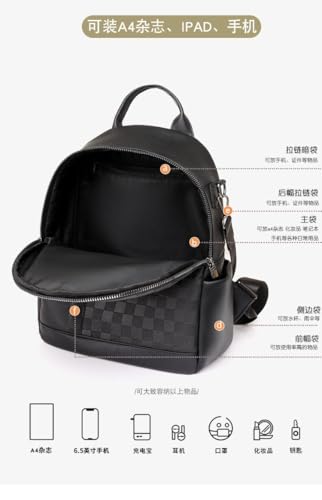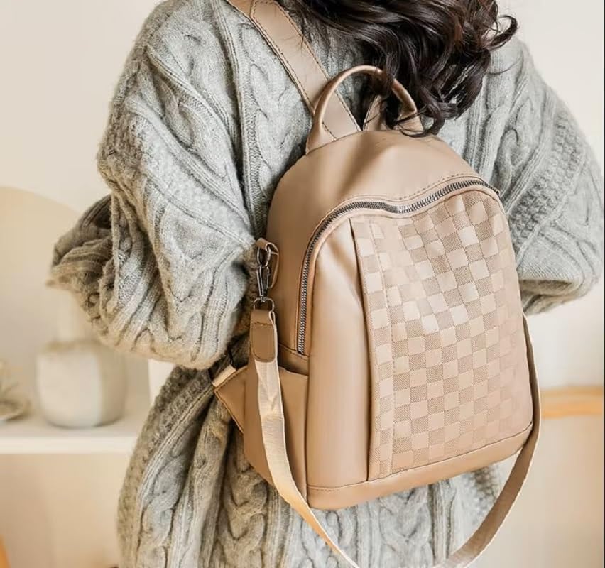Generic - شنطة ظهر نسائية متعددة الجيوب، بنمط منقوش، تتسع لـ A4 وآيباد والهاتف، مع جيوب جانبية وأمامية