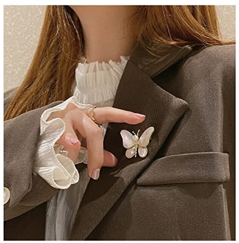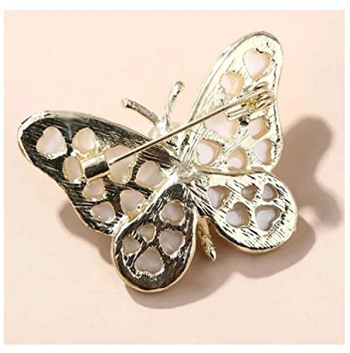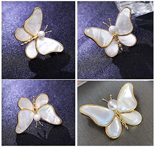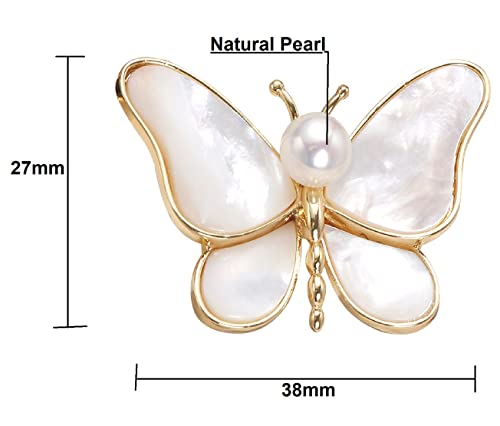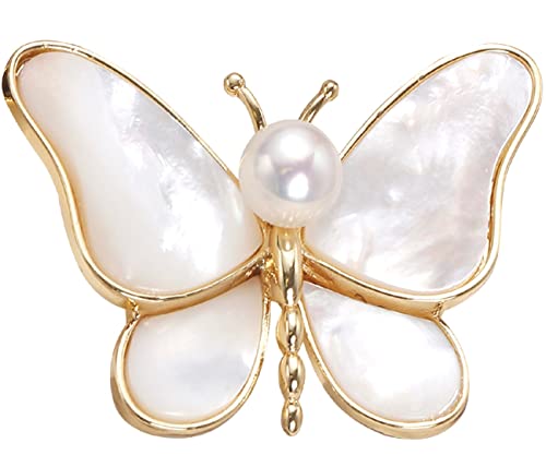 Generic - بروش نسائي لؤلؤ طبيعي دبوس زينة مطلي ذهب بتصميم فراشة أبيض