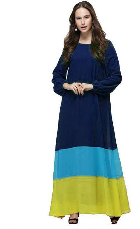 Generic - فستان نسائى كحلي طويل قطن متعدد الالوان