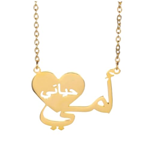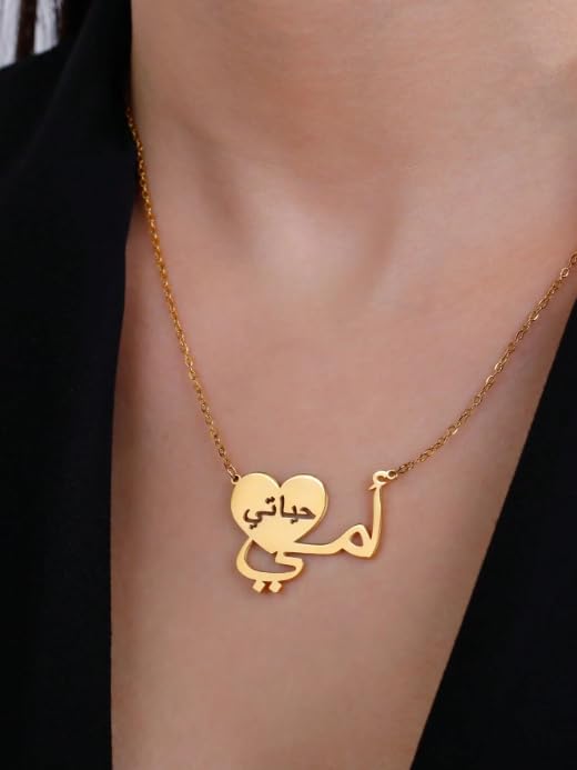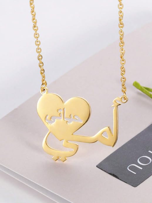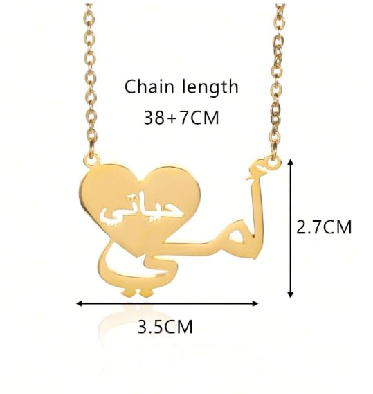 Generic - سلسلة نسائية – تصميم قلب بكلمة "أمي حياتي" – إكسسوار عربي مطلي ذهب – هدية للأم