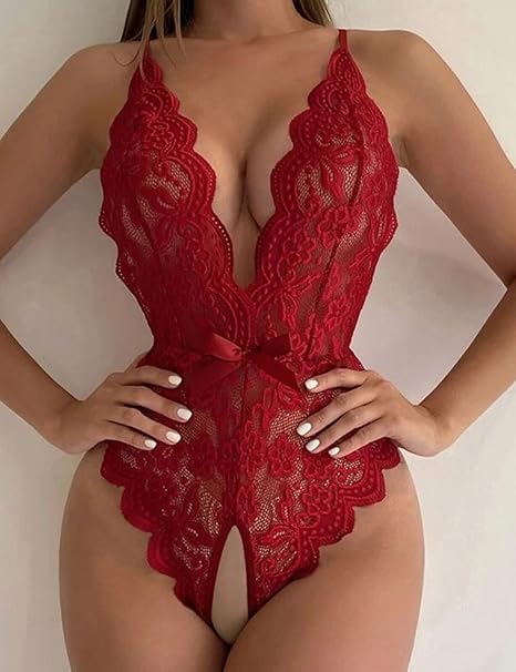 fashion mania - ملابس داخلية نسائية قطعة واحدة من الدانتيل العميق على شكل حرف V تيدي ميني بيبي دول مثير