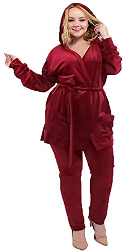 other - بيجامة نسائية تتكون من قطعتين روب وبنطلون لون احمر نبيذى -نساء