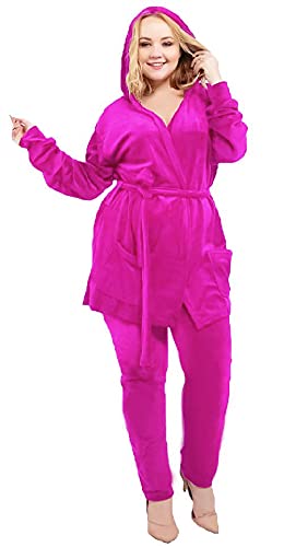 other - بيجامة نسائية تتكون من قطعتين روب وبنطلون لون فوشي -نساء