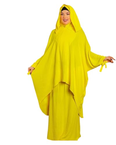 Generic - عباءة صلاة بقلنسوة للنساء، أصفر، تصميم فضفاض بأكمام واسعة، قطعتين