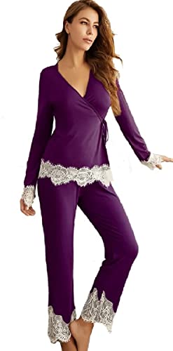 Generic - بيجامة تونيك قطن للنساء - ارجواني وابيض
