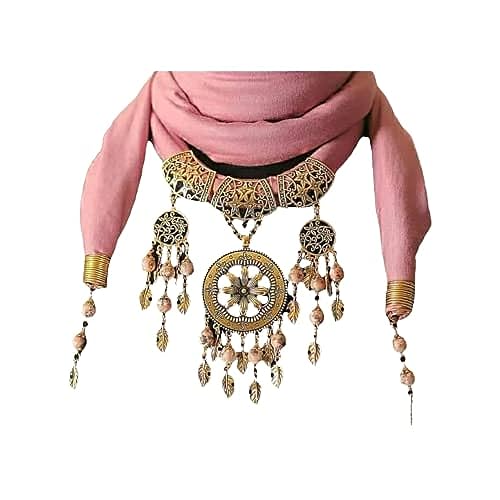 Generic - اسكارف حريمى من اليكرا القطن بالوان الروز مطعم بقلادات متعدده من النيكل الدهبى، للنساء