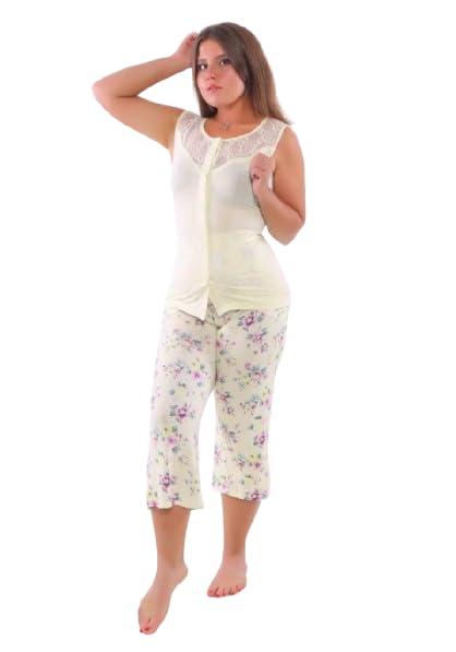 Dadoush - بيجاما نسائية من قطعتين، بلوزة بدون أكمام مع بنطلون كابري بطبعة زهور، ملابس نوم مريحة
