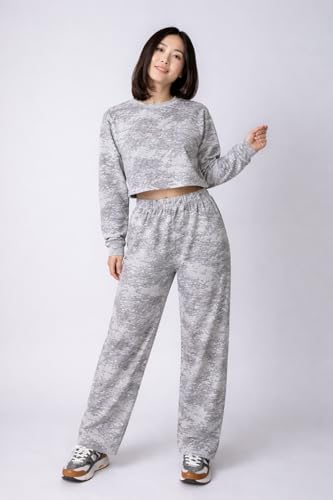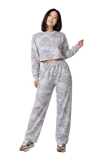 Generic - طقم رياضي نسائي قطعتين، سويت شيرت كروب وبنطلون واسع، قطن مريح، تصميم كاجوال عصري